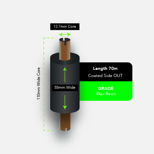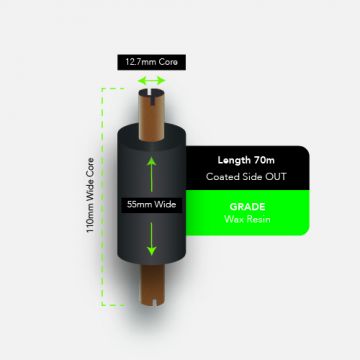 - 55mm width x 70m length – suitable for desktop 4-inch thermal transfer printers