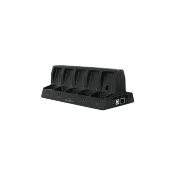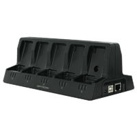 multi-cradle containing 10 slots to charge the OPN2002. The cradle is equipped with contact pins allowing charging and data transfer when the scanner is inserted in the cradle. External communication is supported by a USB or RS232 interface